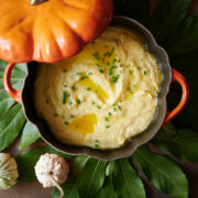 Mascarpone is an Italian cream cheese and it’s usually sold in a tub just like spreadable cream cheese. It has a slightly sweet flavor and is richer thanks to a higher content of butterfat making it the perfect ingredient to make really velvety mashed potatoes.