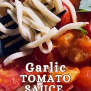 It’s a sweet garlic tomato sauce that won’t leave you smelling like garlic. I know…you’re probably not trusting me on that but because I gently simmer whole cloves of garlic in oil, I’m less likely to knock somebody over with my breath.