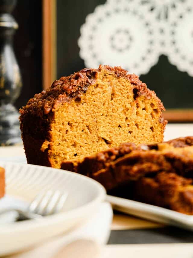 brown sugar pecans butter flour baking powder baking soda salt spices 100% pumpkin sugar vanilla eggs oil milk